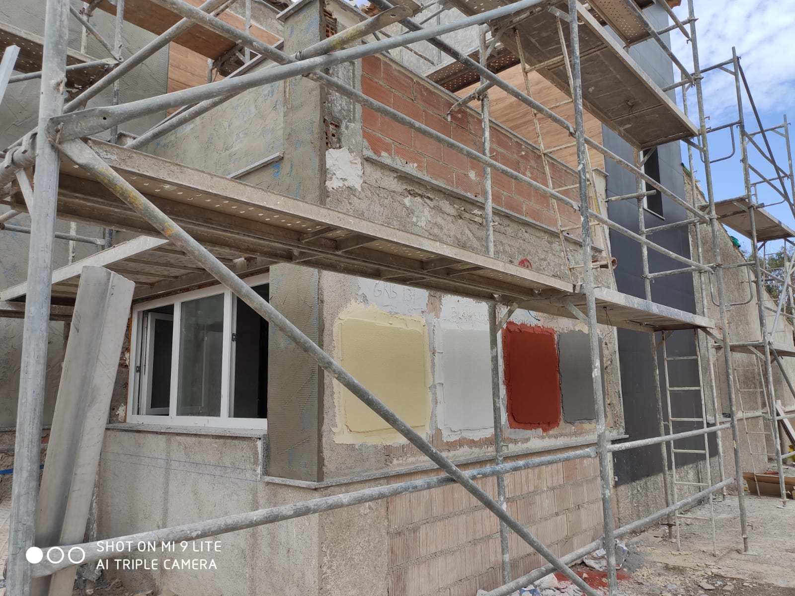 Reforma integral de fachada para vivienda en La Urba, comprendida desde la limpieza y reparación estructural de la anterior fachada hasta su nuevo revestimiento.